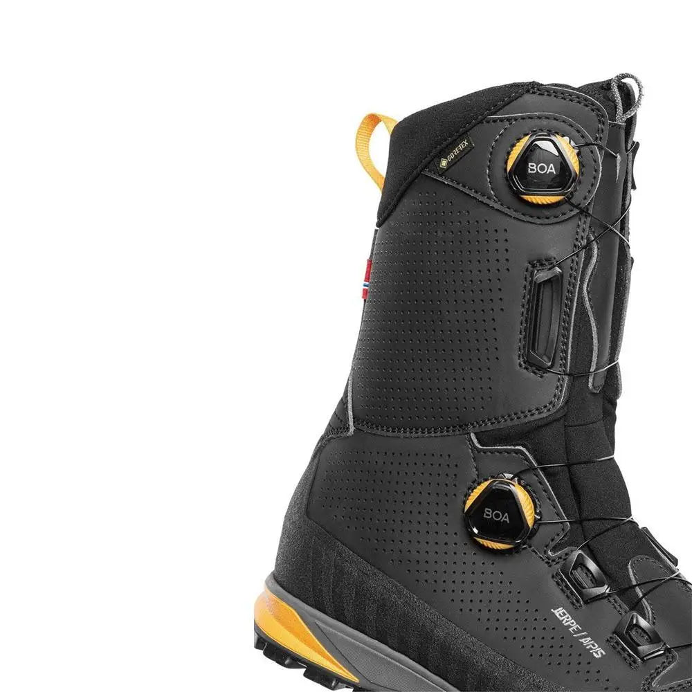 En ekstremt lett støvel for jegere og turgåere som ønsker det beste utstyret. BOA® Fit System muliggjør en presis og enkel tilpassning av støvelen. Det vedlikeholdsfrie AlfaAir™ overmaterialet sikrer maksimal slitstyrke og lett vedlikehold, kombinert med GORE-TEX for ventilering og vanntetthet slik at føttene holde seg komfortable hele dagen uansett vær. Et forsterket lag rundt nedre del av støvlen og tåpartiet øker slitestyrken til skoene når de brukes i tøft terreng. Den nyutviklede Vibram® Grip ARG yttersålen sikrer utmerket grep selv i våte forhold og på varierte underlag, mens den lette EVA mellomsålen gir god demping og stabilitet. Med Jerpe A/P/S GTX kan du fokusere på opplevelsene og ikke utstyret!