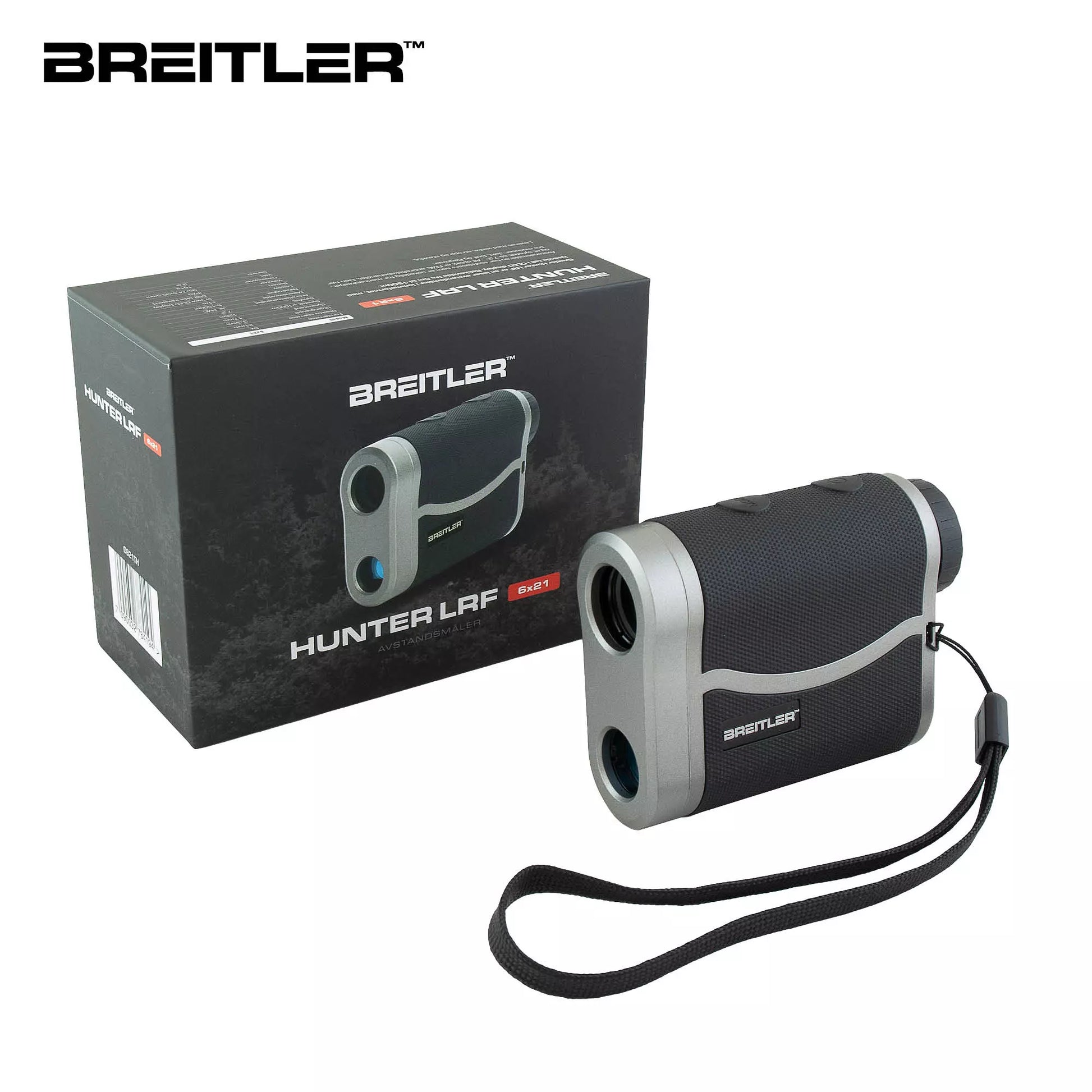Breitler Hunter LRF er en laser avstandsmåler i lommeformat, med lysende tall i OLED display. Rekkevidde fra 5m til 1500m. Avstandsmåleren har «safelaser» som er uskadelig for menneskeøyet, og et synsfelt på 7,2˚. All optikk er FMC antirefleksbehandlet. Den har tre moduser: Jakt, Golf og Regnvær. Leveres med veske, stropp og støvklut.