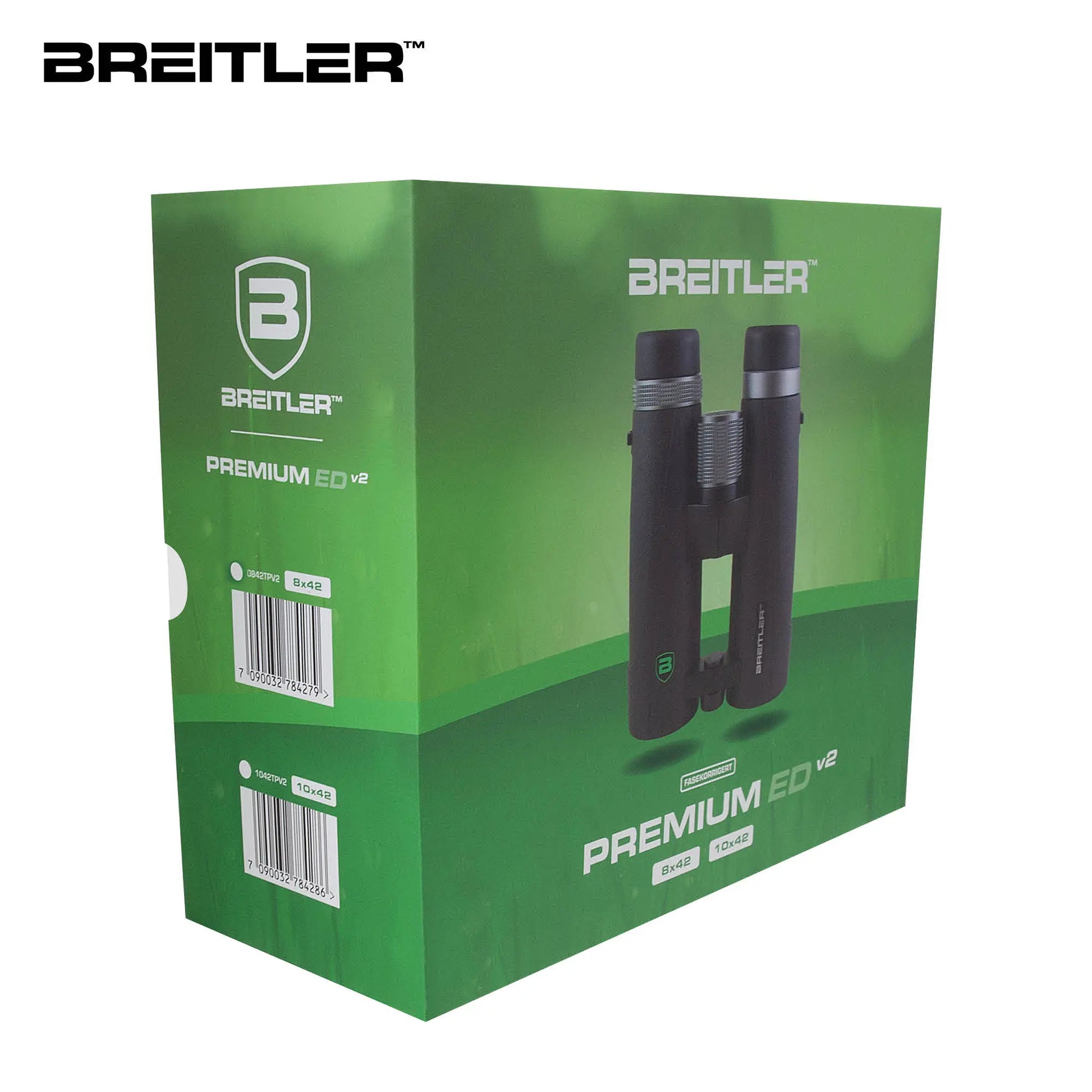 Breitler Premium ED v2 er en solid kikkert med høy optisk kvalitet. Perfekt for jegere, fugleentusiaster og turgåere. Kikkerten er fully multicoated for best mulig lysgjennomgang, har også beskyttende dielectric coating, fasekorrigerte BaK4-prismer for korrekt fargefordeling. ED-optikken gir et lyssterkt og skarpt bilde med minimal forvrenging helt ut til ytterkant, samt riktig fargegjengivelse. Kikkerten har også et stort synsfelt som gjør den rolig og behagelig å holde. Premium ED v2 har kraftig gummiarmering for godt grep og beskyttelse. Den er godt egnet for brillebrukere med sine «Twist-Up»-okularringer i metall. Brukervennlig stort fokuseringshjul i metall gjør fokuseringen enkel. Kikkerthuset er i magnesium og er nitrogenfylt, duggfri og vanntett. 10 års garanti.