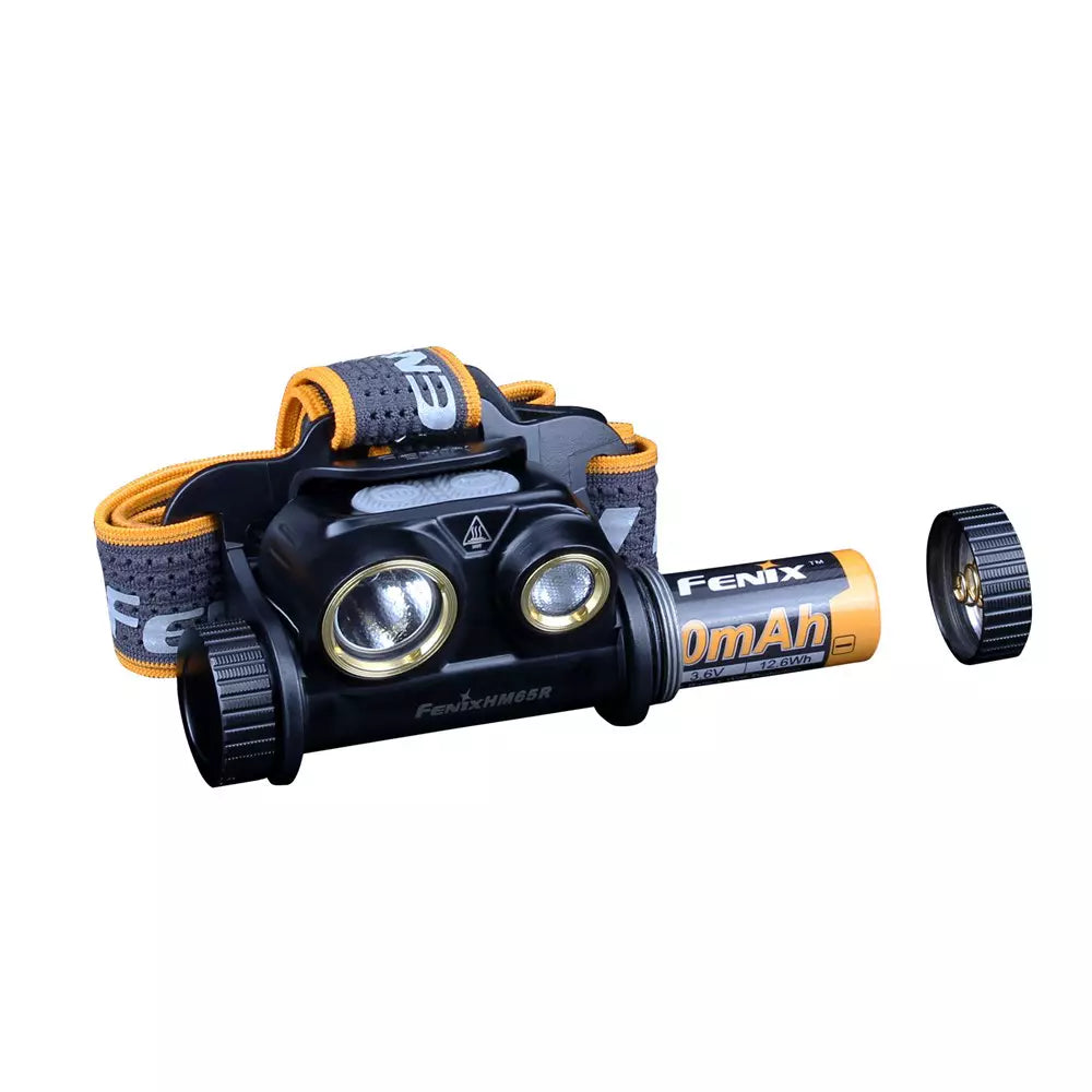 Fenix HM65R er en kraftig hodelykt med to lyskilder. Lykten har tre nivå på flomlys og fire nivå på spotlys. Spotlys leverer en nøytralt hvitt lys for bedre fargegjengivelse. Flom og spotlys kan slås på samtidig for å levere maksimal lysstyrke på 1400 lumen og en langtrekkende lysstråle på 163 meter. Denne hodelykten er oppladbar via USB C porten. Maks brukstid på 280 timer ved laveste lysinnstilling. Lykten er vanntett og støtsikker. Dette er en lykt som er produsert i magnesium og veier derfor kun 97 gram (uten batteri). HM65 vil være et uunnværlig hjelpemiddel i fjellklatring, søk, fot- skiturer eller andre utfordrende friluftsaktiviteter. Batterier er inkludert. Fenix HM65R ble kåret til «Best av de rimeligste» i en hodelykt test i bladet Jeger nr. 2 2019. Denne testen ble også gjengitt i dinside.no Fenix HM65R ble kåret til testvinner på Mintest.no mars 2020.