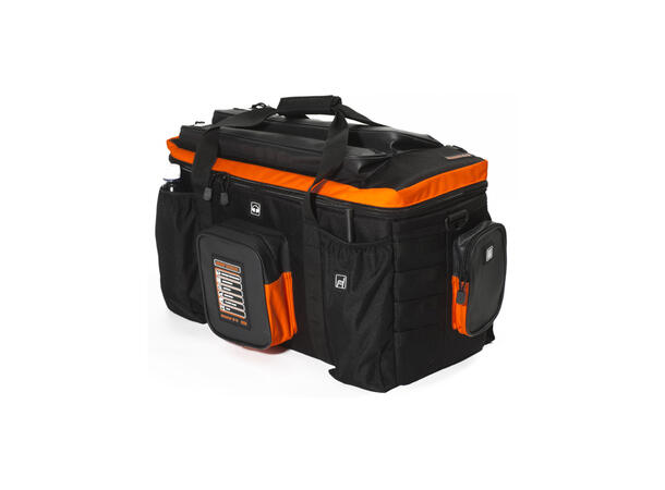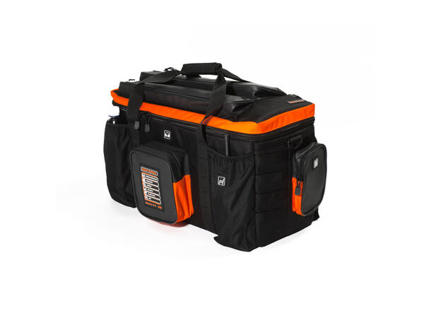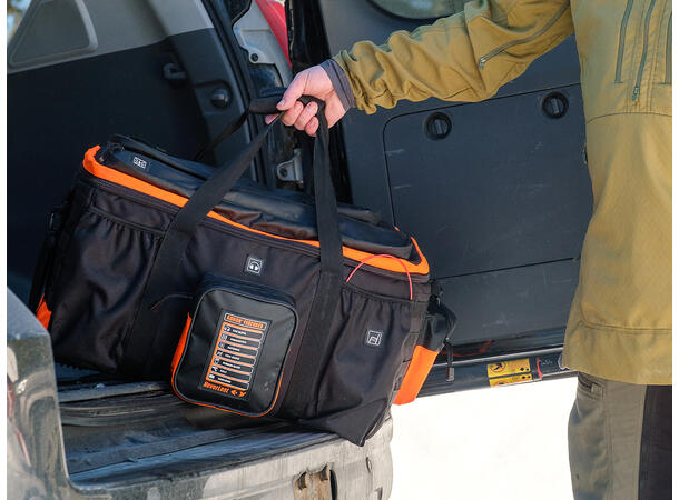 Bagen har dedikerte lommer med symboler for det mange mener er de aller viktigste tingene å huske på; Hørselvern, jaktradio, sluttstykke, ammunisjon. Lommer for langantenne og søppelsekker er også merket. Utvendig har bagen også en stor lomme som passer fint for kart, blinker og eventuelle andre ting i større format. Innvendig har bagen et stort rom som kan inndeles slik du vil med løse polstrede mellomvegger. Egen lomme til førstehjelpsutstyr finner du også på innsiden. Grab bagen og gå – du har med alt du trenger. Et must for alle jegere og skyttere!