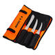 Settet inneholder 3 kniver innpakket i cordura som rulles sammen og festes med borrelås.